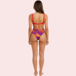 Make a splash with our Sunset Mirage High-Waist Bikini Bottom 🌅✨. Designed in a vibrant tie-dye-inspired print of fiery orange, deep purple, and warm red tones, this high-rise silhouette offers a flattering fit with cheeky coverage for a confident beach-day vibe.